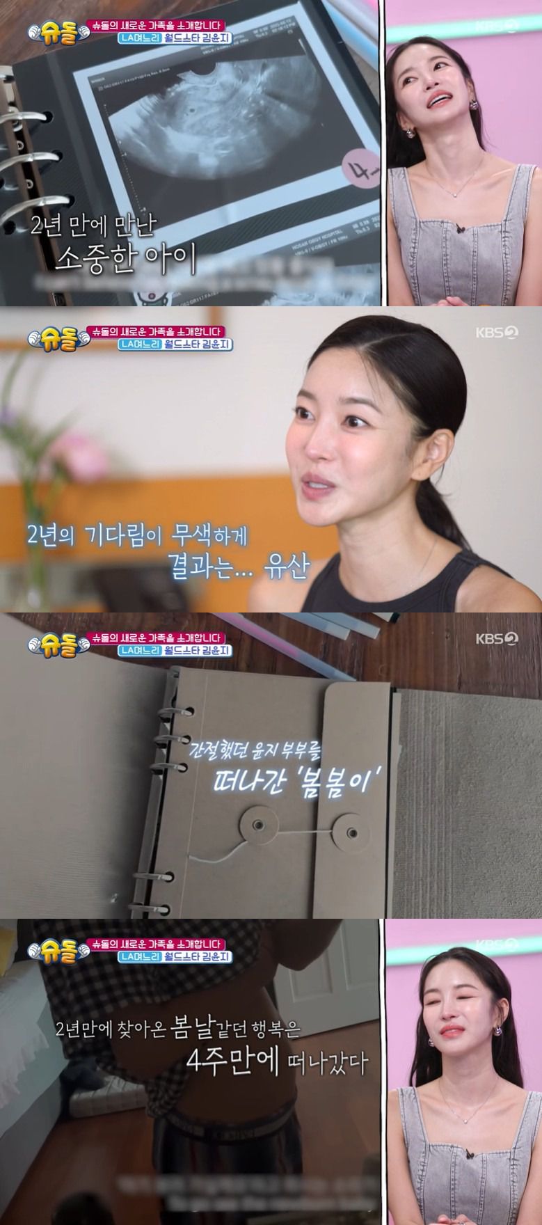 김윤지는 2021년 결혼 이후 시험관 시술로 2023년 임신했으나 안타깝게도 떠나보내야 했다고. 그는 "첫 아이를 계류 유산을 했었다"며 2년의 기다림이 무색하게도 4주 만에 떠나갔던 아이 봄봄이를 언급했다.
