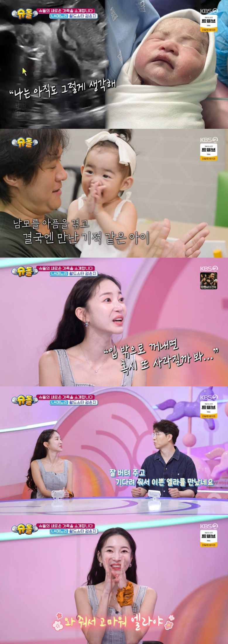 20일 방송된 KBS 2TV '슈퍼맨이 돌아왔다'(슈돌) 586회는 '함께 키우는 즐거움' 편으로 김윤지가 딸 엘라와 함께 등장했다.