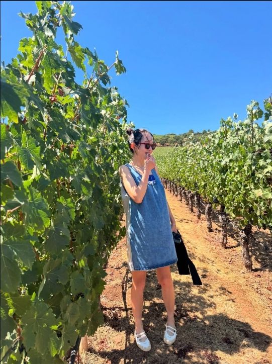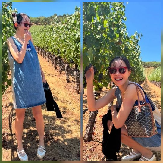 공개된 사진 속 엄지원은 포도밭 한가운데에서 환한 미소를 지으며 포도를 만지고 있다. 데님 원피스 차림에 선글라스를 착용한 채 특유의 털털하고 밝은 매력을 발산해 눈길을 끌었다.