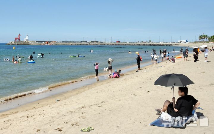 [제주=뉴시스] 오영재 기자 = 폭염경보가 발효 중인 16일 오후 제주 이호테우해수욕장에서 더위를 식히러 온 피서객들이 물놀이를 하고 있다. 2025.08.16. oyj4343@newsis.com