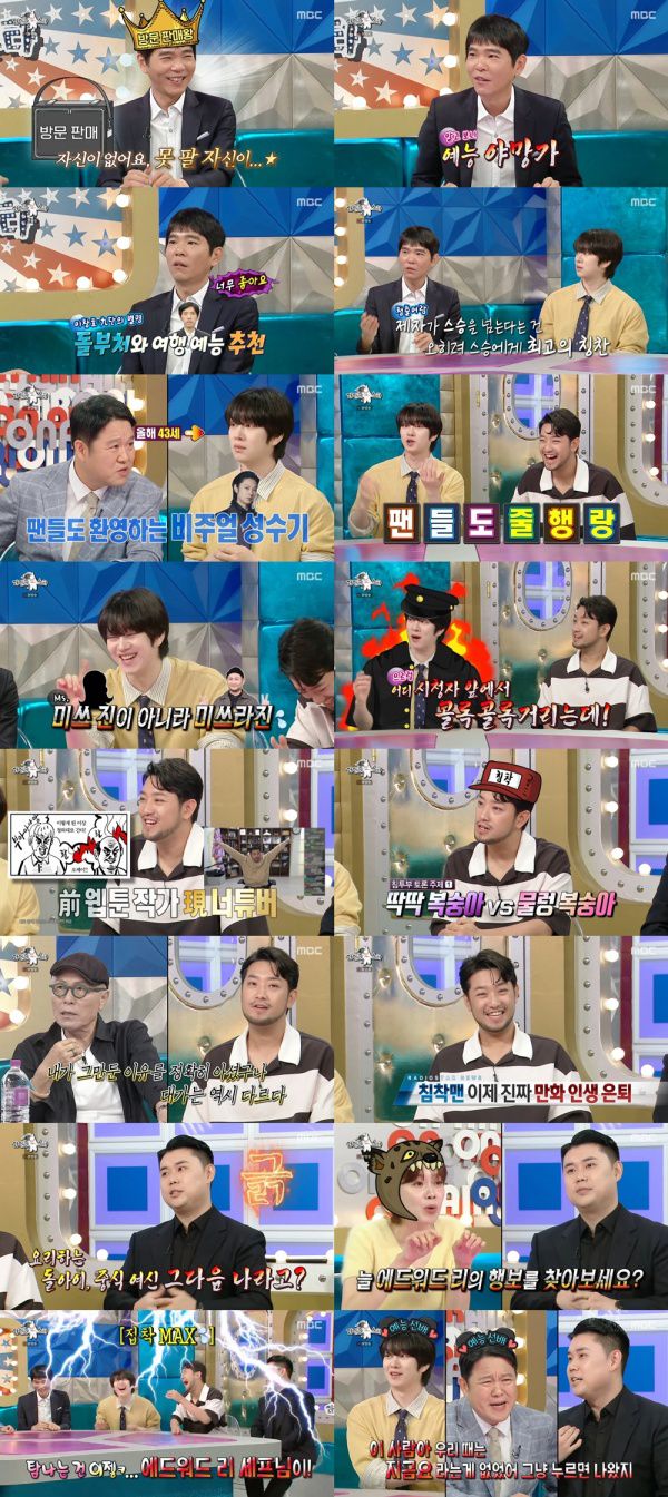 [스포츠투데이 정예원 기자] 바둑 기사 이세돌, 슈퍼주니어 김희철, 크리에이터 침착맨, 셰프 나폴리 맛피아(권성준 셰프)가 출연한 '라디오스타'가 화제를 모으고 있다.