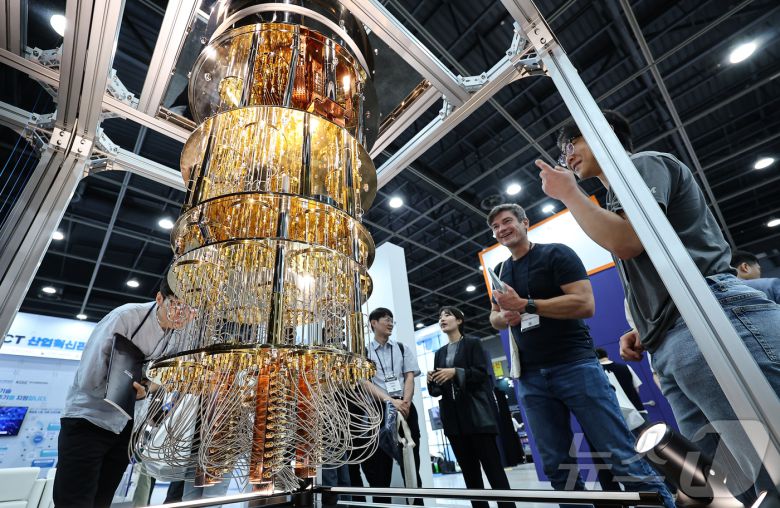 (사진은 기사 내용과 무관함)24일 서울 서초구 aT센터에서 열린 '퀀텀코리아 2025'에서 관람객들이 양자컴퓨터 모형을 살펴보고 있다. 2025.6.24/뉴스1 ⓒ News1 김도우 기자