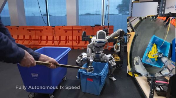 이번에 공개된 영상 속 아틀라스는 로봇개 ‘스팟’의 부품을 적재함과 선반으로 옮기는 작업을 수행한다. 영상에서 아틀라스는 부품 분류, 정렬과 같은 작업을 수행하기 위해 걷거나 쪼그리고, 물건을 들어 올리고 전신을 함께 움직이는 등 자연스러운 동작을 연출한다.