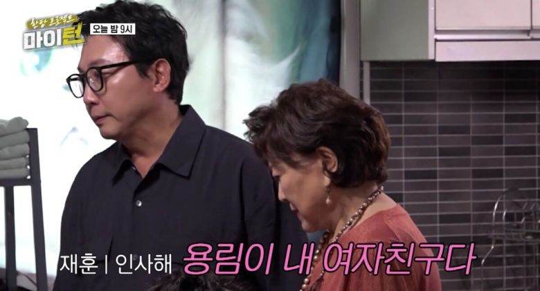 뒤이어 김용림은 '재훈여친'으로 소개되며 "부끄럽지만 제가요 재훈 씨랑 잘 만나고 있어요"라며 자연스럽게 상황극을 이어갔다.