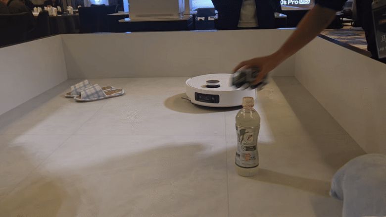 엔비디아 소프트웨어 기반 강화학습(RL)을 통해 장애물 인지 기능을 강화한 드리미의 로봇청소기 '아쿠아10 울트라 롤러'가 새로운 장애물들을 인지해 피해가는 모습./최지희 기자 |