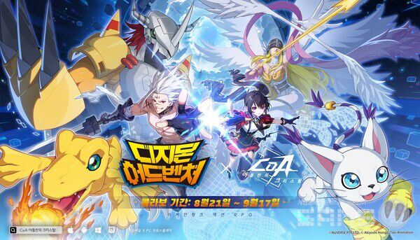 뉴버스의 크로스플랫폼 액션 RPG 'CoA: 아틀란의 크리스탈'은 애니메이션 시리즈 '디지몬 어드벤처'와 손을 잡았다. 9월 17일까지 진행되는 이번 콜라보는 마법과 기계가 융합된 CoA의 독창적 세계관에 디지털 몬스터들의 모험 정신을 더한다.