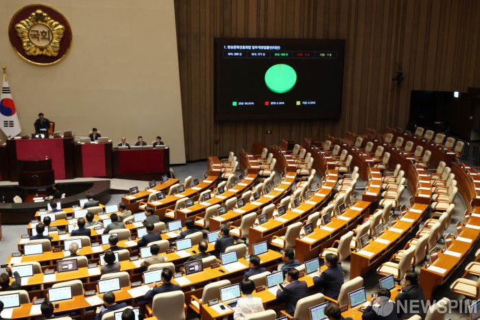 [서울=뉴스핌] 정일구 기자 = 21일 오전 서울 여의도 국회에서 열린 제428회 국회(임시회) 제1차 본회의에서 방송문화진흥화법 일부개정법률안이 가결되고 있다. 2025.08.21 mironj19@newspim.com |