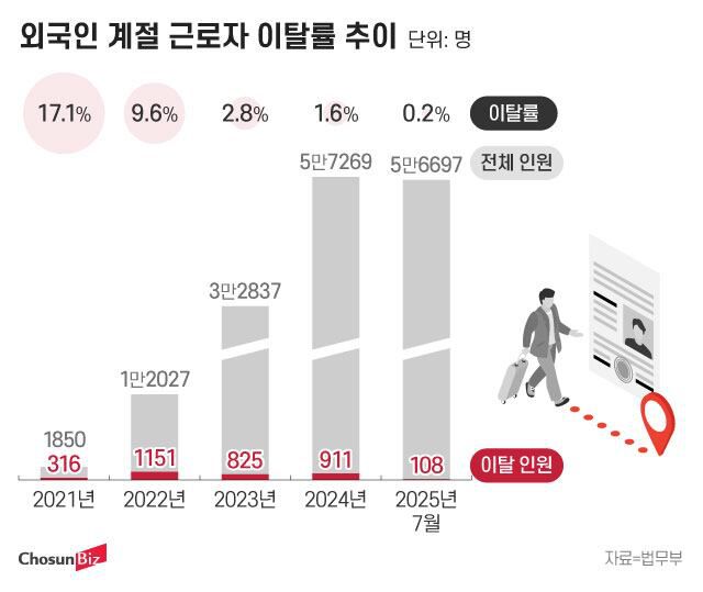 법무부 관계자는 “이탈 신고가 들어오면 해당 외국인 계절 근로자에게 출석을 요구하고 출입국 기록과 친인척을 확인하는 등 종합적으로 조사한다. 현재 통계는 현실을 비교적 정확히 반영하고 있다”고 말했다.