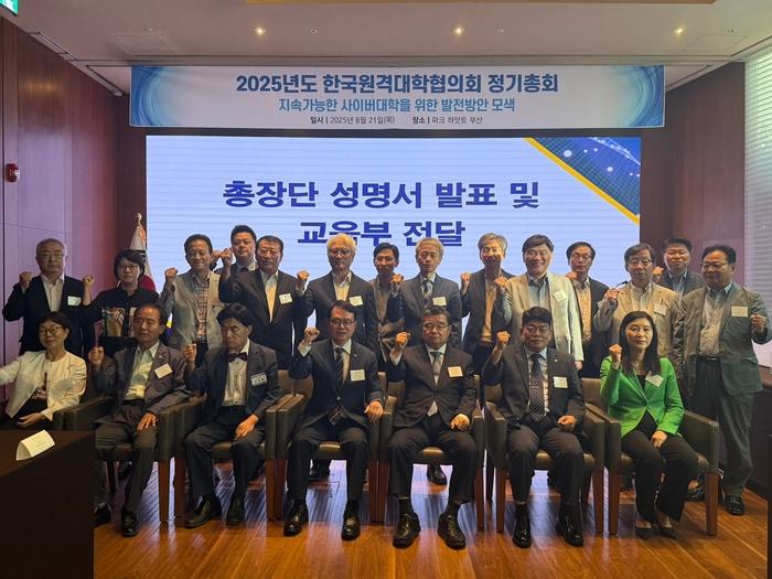 사이버대 총장단은 21일 열린 2025 한국원격대학협의회 정기총회에서 총장단 명의 성명서를 발표했다. (사진=이지희 기자)