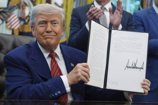 도널드 트럼프 미국 대통령이 지난 5월 23일(현지시간) 워싱턴 D.C. 백악관에서 원전 건설 지원 행정명령에 서명한 후 이를 들어보이고 있다. (사진=AP연합뉴스) |
