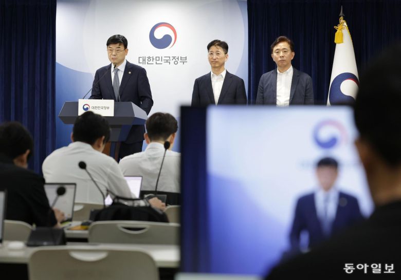 국토교통부 이상경 제1 차관 등이 21일 오후 정부 서울청사에서 외국인 토지거래허가구역 지정 관련 합동 브리핑을 하고 있다. 왼쪽부터 이 차관, 강성팔 국세청 국제조사관리관, 윤영은 금융정보분석원 제도운영기획관. 변영욱 기자 cut@donga.com |