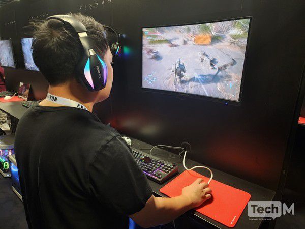 게임스컴 2025 현장에서 기자가 엔씨소프트의 '신더시티'를 시연해보고 있다. / 사진=조성준 기자