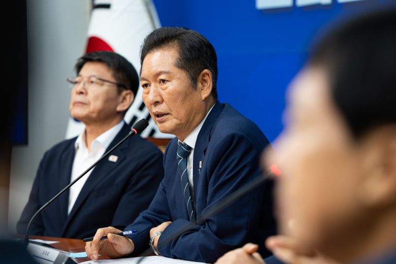 정청래 대표는 이날 의원총회에서 “검찰청 폐지, 그리고 공소청·중수청 설립을 담은 정부조직법을 9월 내에 본회의에서 처리하자고 당과 대통령실이 입장을 같이했다”며 “대통령이 결단해주신 부분에 대해 감사를 드렸다”고 했다. 전날 이재명 대통령과의 만찬에서 이뤄진 ‘합의’를 재확인한 것이다. 민주당 김현정 원내대변인은 기자들에게 “9월 25일 본회의가 예정돼 있어 그날 처리될 가능성이 크다”고 설명했다.