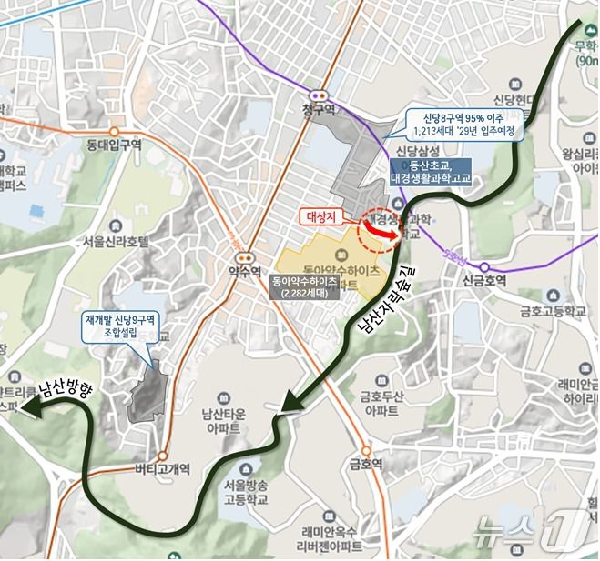 청구동마을마당에는 지역 여건에 맞춰 수직형 엘리베이터를 설치할 예정이다. 수직형 엘리베이터가 가동되면 주민 이동 편의는 물론 엘리베이터 상부가 남산자락숲길과 연결되면서 어르신, 유모차 및 휠체어 이용자 등 이동약자들도 도심 주거지에서 15분 내 남산을 방문할 수 있을 것으로 기대된다.