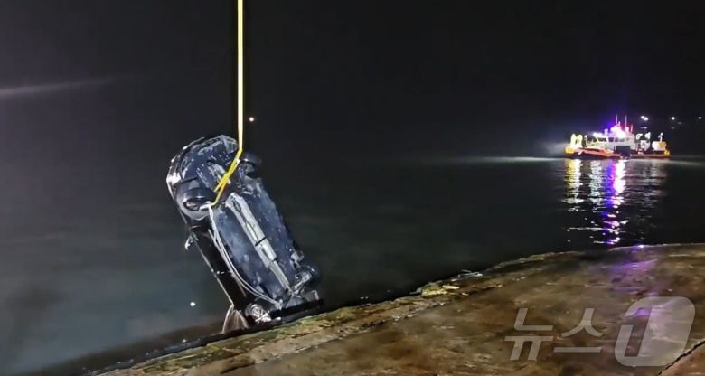 목포해경이 2일 진도군 진도항에서 일가족 4명이 탑승한 차량을 인양하고 있다.(목포해경 제공. 재판매 및 DB 금지) 2025.6.3/뉴스1 ⓒ News1 박지현 기자 |