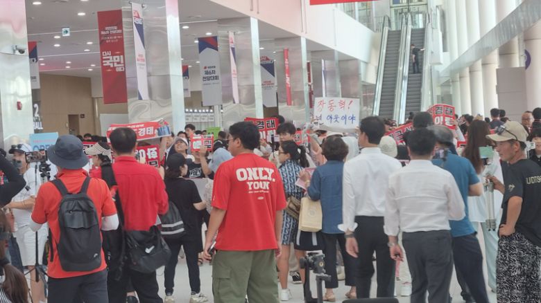 [르포] 尹재소환된 국힘 전당대회…지지자도 '찬탄 대 반탄'