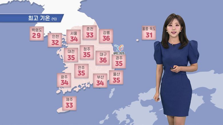 내일 서울의 최고기온 34도로 오늘보다도 덥겠고, 습도가 높아 체감온도는 35도에 육박하겠습니다.