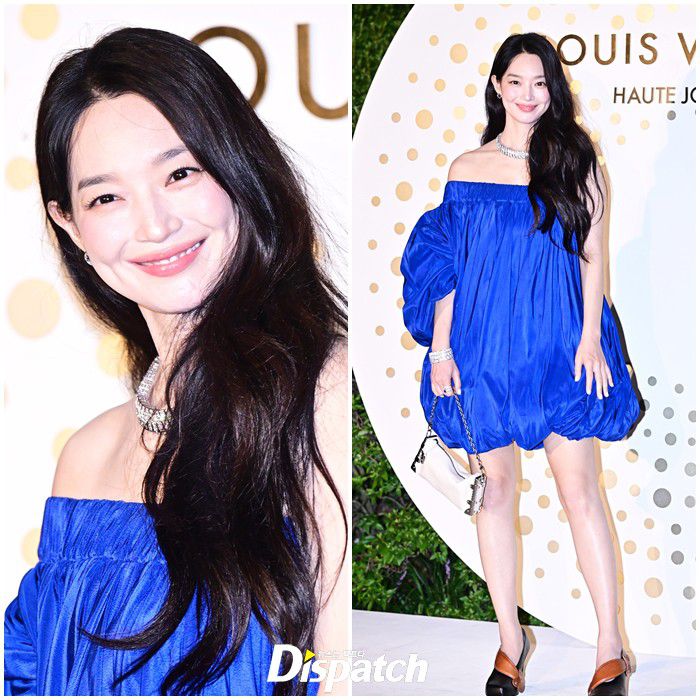 신민아는 블루 컬러의 튜브탑 드레스로 우아한 미모를 뽐냈다. 청순한 비주얼과 러블리한 미소가 돋보였다.
