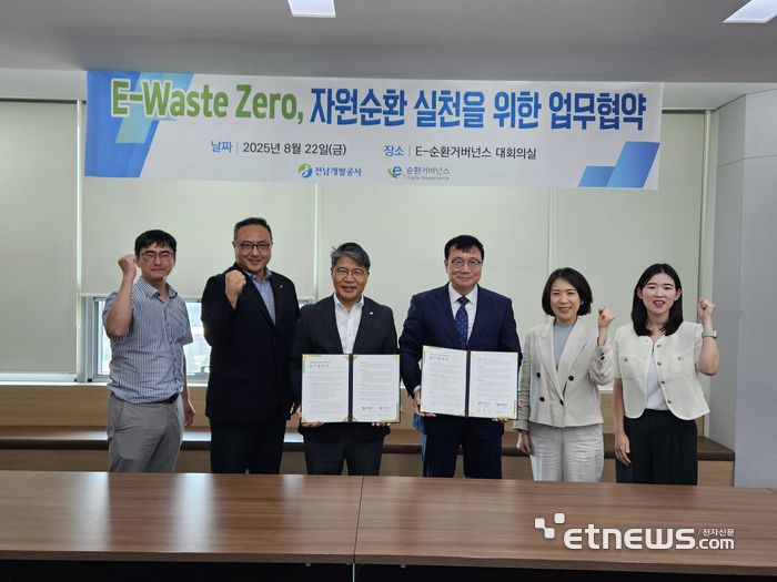 환경부 인가 비영리 공익법인 E-순환거버넌스(이사장 정덕기)는 지난 22일 전남개발공사(사장 장춘모)와 '전자제품 자원순환 실천을 위한 업무협약'을 체결했다고 23일 밝혔다.