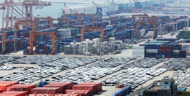 미국이 수입산 철강과 알루미늄 제품에 부과하는 50% 품목관세 적용 범위를 407종의 파생상품으로 확대한 지난 8월 18일 경기도 평택항에 컨테이너가 쌓여 있다. [사진=연합뉴스] |