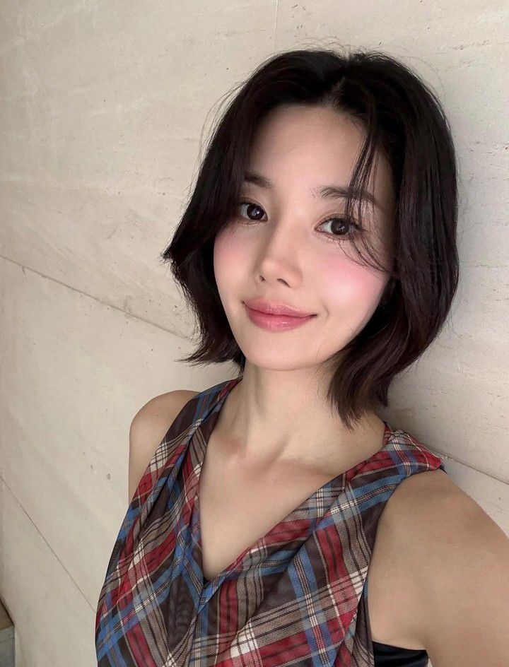 사진 속 권은비는 체크 패턴 홀터넥 톱을 입어 소녀스러운 무드를 살리고, 깊은 네크라인으로 은근한 섹시함을 더했다. 짧은 단발 헤어를 자연스럽게 드라이해 깔끔하면서도 세련된 분위기를 완성했다.