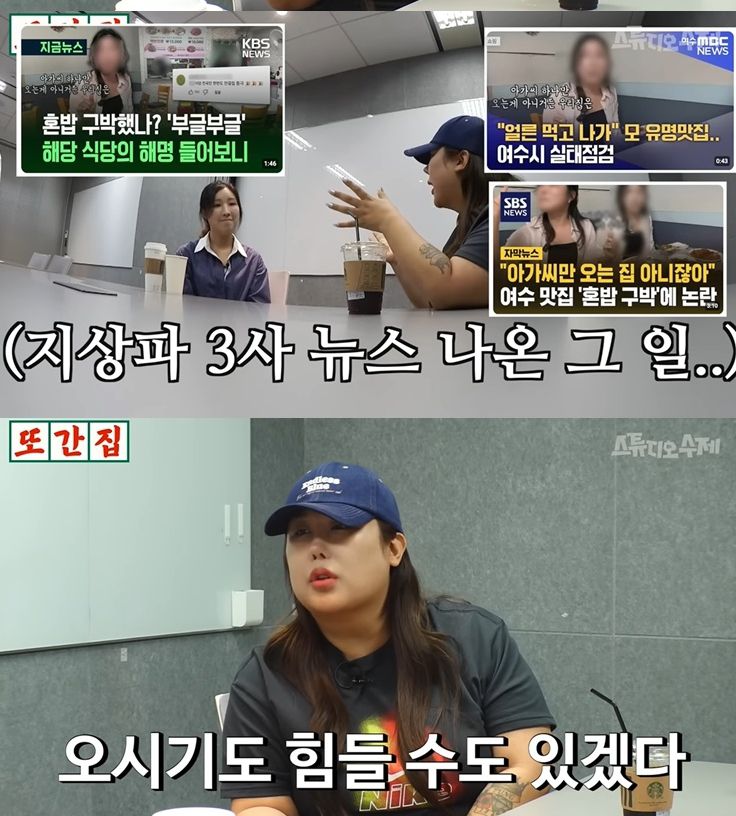영상 속 풍자는 식당 불친절 논란 후 다시 여수를 찾은 모습. 마침 지나가는 시민들은 "'또간집' 파이팅"이라며 응원했고 풍자는 "고맙다"는 말과 함께 울컥했다.