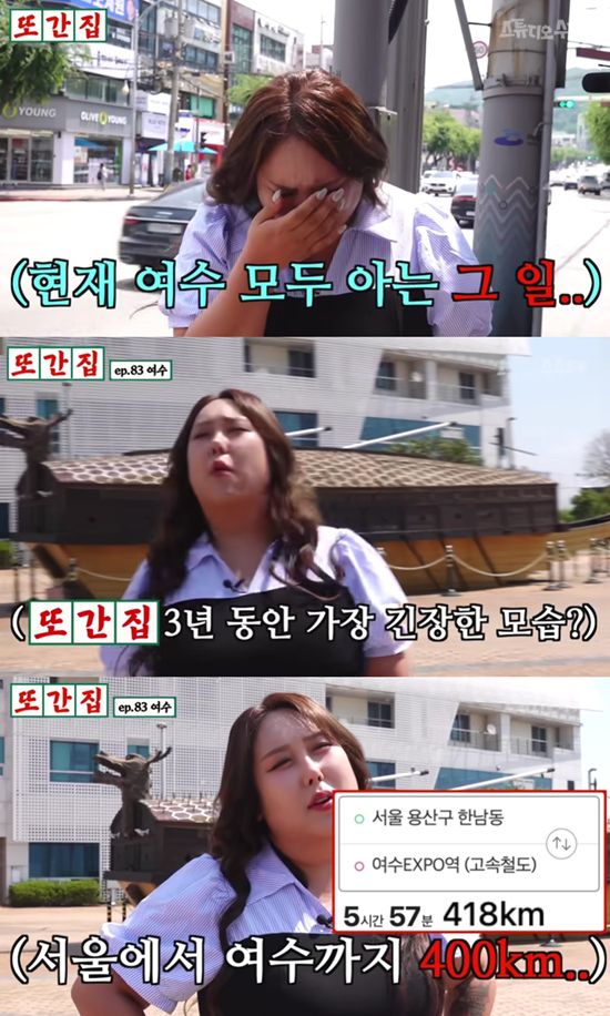 오프닝을 위해 여수엑스포 역 앞에 선 풍자는 '또간집' 3년 동안 가장 긴장한 얼굴을 보였다. "파이팅합시다"를 3번 외치기도.