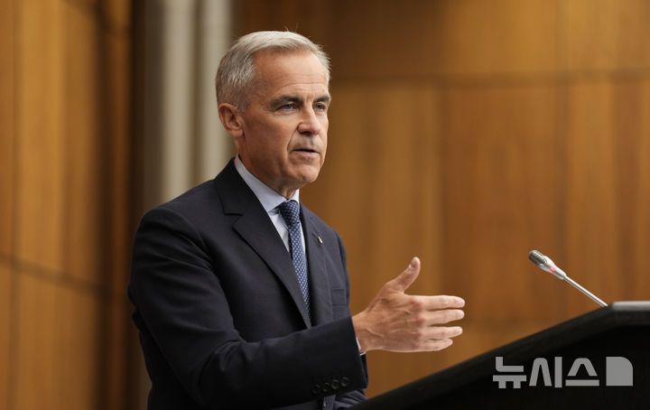 [오타와=AP/뉴시스]마크 카니 캐나다 총리가 7월30일 온타리오주 오타와에서 기자회견하고 있다.  그는 22일(현지시각) 자동차, 철강, 알루미늄에 대한 세금은 계속 부과하겠지만 미국 상품에 대한 수십억 달러의 보복 관세를 일부 인하할 것이라고 말했다고 BBC가 보도했다. 2025.08.23.