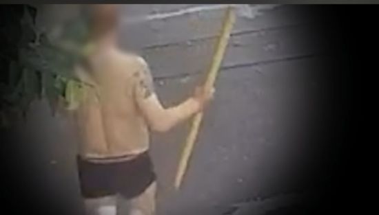 윷놀이 도박판에서 시비가 붙자 한 남성이 탈의한 채 각목을 들고 사람들을 위협하고 있다. 유튜브 채널 '대한민국 경찰청' 캡처 |