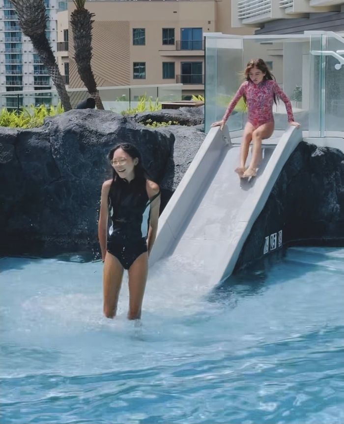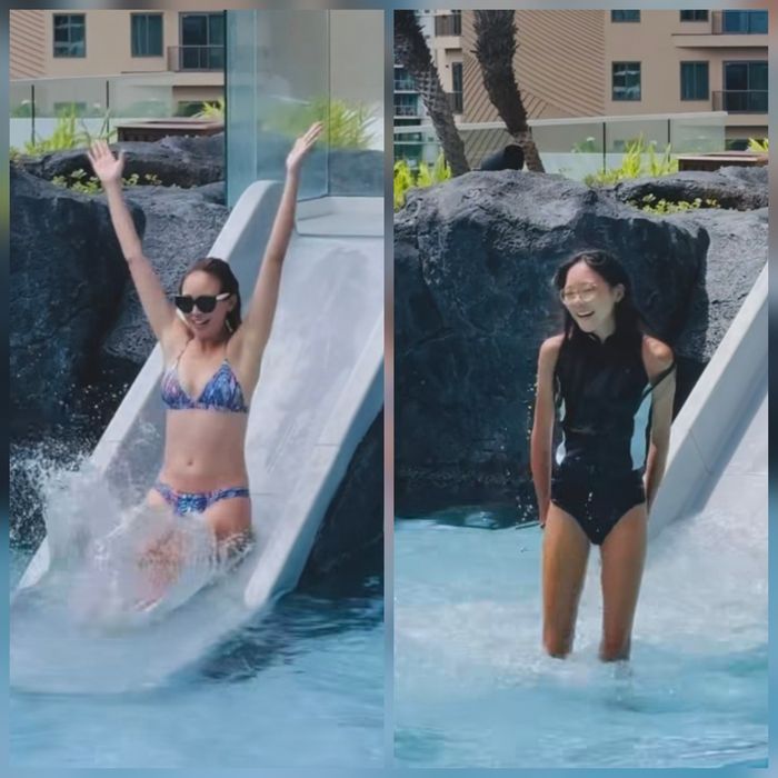 공개된 사진과 영상 속 야노 시호는 수영장에서 지인들과 함께 미끄럼틀을 타며 동심으로 돌아간 듯한 시간을 보냈다.