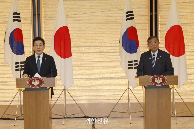 이시바 총리는 “양국을 둘러싼 전략적 환경이 어려워지는 가운데 양국 관계 그리고 일본·한국·미국 3국 공조의 중요성은 더해지고 있다”며 “이 대통령과는 취임한 직후부터 이 점에 대해 인식을 공유하고 있어 마음 든든하게 생각하고 있다”고 말했다. 그는 “이웃 나라이기에 어려운 문제도 존재하지만 일관된 정책을 취해나갈 것”이라고 했다.