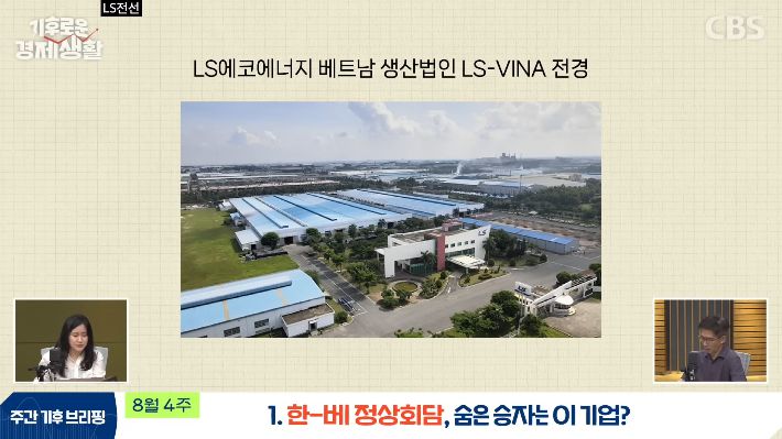 ◇ 최서윤> 대표적으로 LS그룹이 있습니다. 베트남 해상풍력 발전에 맞춰서 해저케이블 공장 신설을 추진 중이라고 하고요. 그다음에 LS가 베트남을 거점으로 동남아 국가 간에 HVDC, 초고압 직류 송전 시장 진입도 노리고 있다고 합니다. 그리고 효성중공업도 베트남 전력망 사업에 발을 들였다고 해요. 그래서 베트남 전력 공사와 같이 전력망 안정화 사업에 손을 잡았다고 합니다.