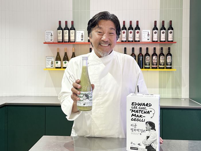 에드워드리 셰프가 GS25와 협업해 선보이는 '이균 말차 막걸리'를 홍보하고 있다.