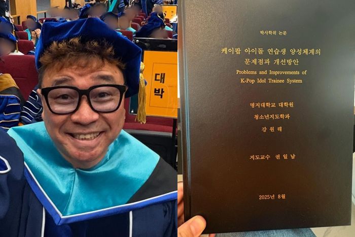 공개된 사진에는 강원래가 지난 19일 명지대학교에서 청소년지도학 박사 학위를 받는 모습과 학위기, 논문 사진이 담겼다.