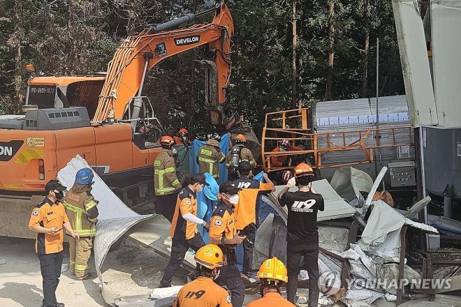 사진은 지난 21일 순천시 서면 순천일반산업단지 내 레미콘 공장에서 소방 당국이 구조 작업을 하고 있는 모습. 연합뉴스. |
