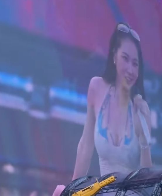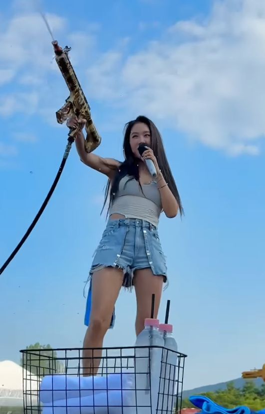 소유는 청핫팬츠와 흰색 민소매로 여름의 청량함을 담아냈다. 여기에 '워터밤'에 어울리는 파란색 비키니를 갖춰 입고 남다른 볼륨감을 과시하기도 했다.