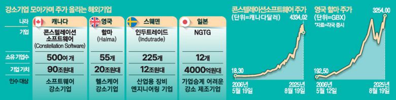 '단일 대기업이 아니라 수백 개의 소규모 사업체를 소유해 높은 자본 수익률을 창출한다.' 보통 각국 증시를 상상하면 대표 기업을 떠올리게 마련이죠. 미국은 엔비디아, 아마존, 애플, 테슬라, 메타 등 빅테크가 먼저 생각납니다. 일본은 도요타, 소니, 소프트뱅크, 프랑스는 루이비통모에헤네시(LVMH), 로레알, 그리고 국내 증시는 삼성전자, SK하이닉스, 현대자동차 등 시가총액 상위권을 기록하는 기업들이 떠오르죠. 하지만 선진국 사례를 보면 한 분야에서 톱(Top)을 찍는 대기업까진 아니지만, 주가가 우상향하는 기업들이 있습니다. '작은 기업을 꾸준히 사 모아 복리로 키우는 전략(compounding through acquisitions)'을 구사하는 기업들이 이에 해당합니다.