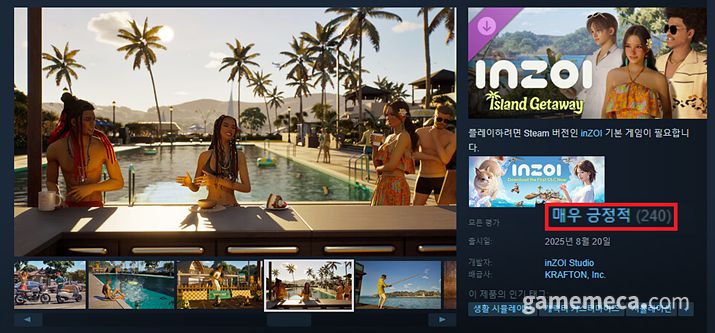 생활 시뮬레이션 '인조이(inZOI)'의 첫 무료 DLC '섬으로 떠나요'가 유저들에게 호평 받고 있다.