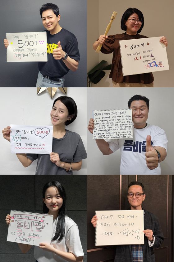 '좀비딸'의 500만 돌파를 기념해 조정석, 이정은, 조여정, 윤경호, 최유리, 필감성 감독의 친필 메시지 인증샷이 공개됐다. 배우들은 저마다 개성 넘치는 메시지를 통해 관객들에게 감사의 마음을 전했다.