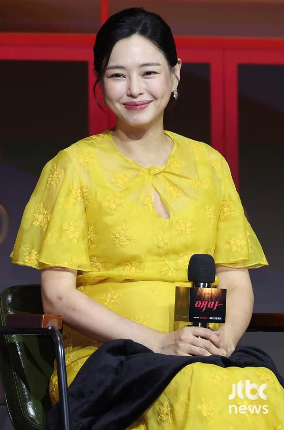 18일 오전 서울 호텔 나루 엠갤러리에서 넷플릭스 시리즈 '애마' 제작발표회가 열린 가운데, 배우 이하늬가 만삭의 몸으로 참석해 작품에 대한 남다른 애정을 확인시켰다. 박세완 엔터뉴스팀 기자 park.sewan@jtbc.co.kr