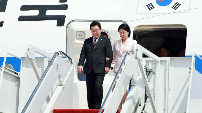 이 대통령, 미 워싱턴 군공항 도착…김혜경 여사 동행