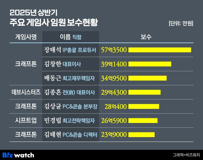 다른 게임사에서도 스타 개발자들이 최고경영자와 비슷하거나 그를 뛰어넘는 수준의 보수를 받은 인물이 속속 나왔다. '퍼스트 디센던트'를 총괄한 이범준 넥슨게임즈 PD는 11억5258만원의 소득을 올렸는데, 박용현 대표이사(7억655만원)를 훌쩍 뛰어넘는 수준이다.