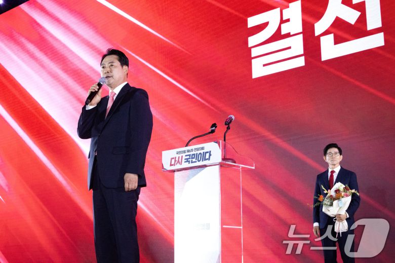 국민의힘 당 대표 결선투표 진출자 장동혁 후보가 22일 오후 충북 청주시 오스코에서 열린 제6차 전당대회에서 발언하고 있다. (공동취재) 2025.8.22/뉴스1 ⓒ News1 신웅수 기자 |