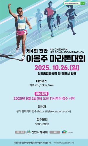 천안시체육회가 주최·주관하고 천안시가 후원하는 이번 대회는 오는 10월 26일 천안종합운동장 오륜문광장 일원에서 열린다.