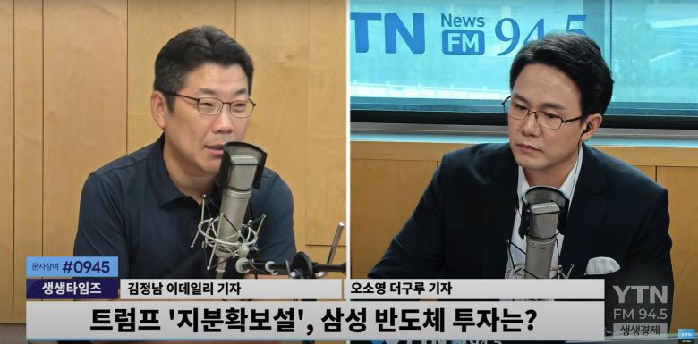 □ 김정남 : 이것도 예측이 참 어렵습니다. 솔직히 잘 모르겠습니다. 트럼프 대통령은 일단 이런 거래를 많이 할 것이다 이렇게 말은 했고요. 그런데 월 스트리트 저널을 제가 쭉 보니까 트럼프 행정부는 미국 내에 투자를 확대하고 있는 반도체 기업들에 대해서는 지분을 요구하지 않을 것이라는 입장이다 이렇게 보도를 했더라고요. 두 개가 완전히 상반되는 얘기인데 물론 TSMC도 노발대발을 하고 있지만 삼성전자에 대한 우리의 그 입장 압박이 우리에게 큰 관심이죠. 지금 이거를 상식선 정도로 생각을 해보면은 이 트럼프 행정부가 이제 정상회담을 앞두고 이런 지분 확보설을 좀 흘리면서 삼성전자가 반도체 미국 내 투자를 훨씬 더 확대해라 이런 압박 정도로 이렇게 생각할 수 있고 저도 이렇게 생각을 하는데