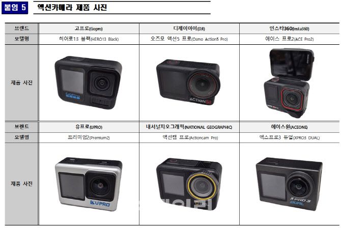 소비자원, 액션캠 6개 브랜드 제품 품질 평가
