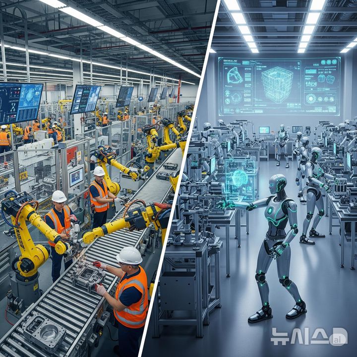 [창원=뉴시스] 피지컬 제조AI 도입 전후 조립라인 현장 모습 비교. (사진=경남도 제공) 2025.08.25. photo@newsis.com |