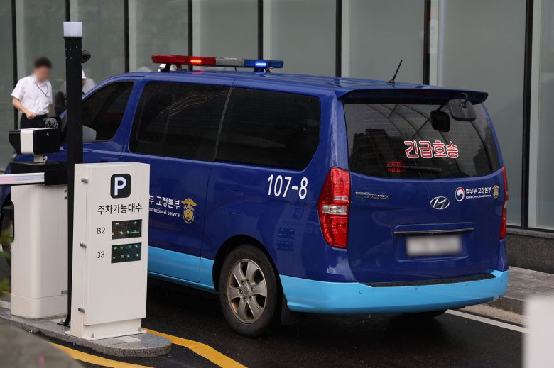 김건희 여사가 탑승한 호송차가 25일 김 여사 관련 의혹들을 수사하는 민중기 특별검사팀 사무실이 마련된 서울 종로구 KT광화문빌딩으로 들어가고 있다. [연합] |