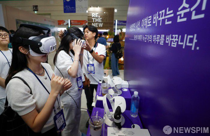 [서울=뉴스핌] 류기찬 기자 = 제2회 대한민국 사회적 가치 페스타가 개막한 25일 오후 서울 강남구 코엑스에서 관람객들이 가상현실(VR)기기를 통한 뇌전증 환자의 시각을 체험하고 있다. 대한상공회의소가 주최하는 사회적 가치 페스타는 기후 위기, 지역 소멸, 디지털 격차 등 복합적인 사회문제 해결을 위해 마련된 민관 협력 행사다. 2025.08.25 ryuchan0925@newspim.com |