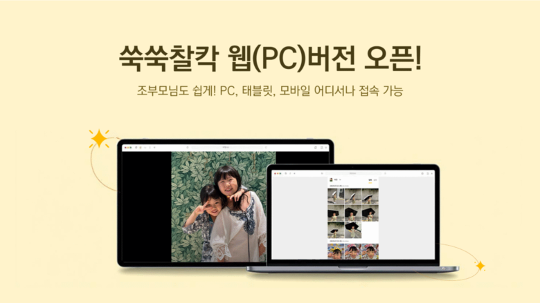 쑥쑥찰칵은 가족 구성원들이 아이의 성장 과정을 기록하고 공유하는 플랫폼이다. 회사 측에 따르면 전체 활성 사용자(MAU)의 50%가 50대 이상 조부모 세대로 구성돼 있다. 그동안 앱 설치와 스마트폰 조작에 어려움을 겪는 일부 조부모 사용자들로부터 편의성 개선 요청이 지속적으로 제기됐다.